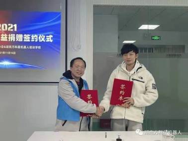 2021爱心助学公益签约仪式 湘潭市湘童儿童公益协会会长陶奕和湖南方科星机器人培训学校董事长李早一签约照片 http://www.xtgy.org.cn/xinwendongtai/tupianxinwen/prdt1 http://www.xtgy.org.cn/logo.png 2021爱心助学公益签约仪式 湘潭市湘童儿童公益协会会长陶奕和湖南方科星机器人培训学校董事长李早一签约照片